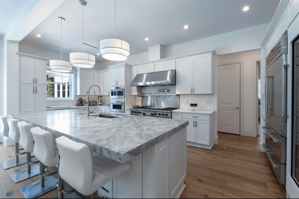 Dr. Joe Ceravolo renovated his late parents’ 1950s-era house — creating an open floor plan with a kitchen fit for a chef — at 244 Orange Grove Road on the North End of Palm Beach.
